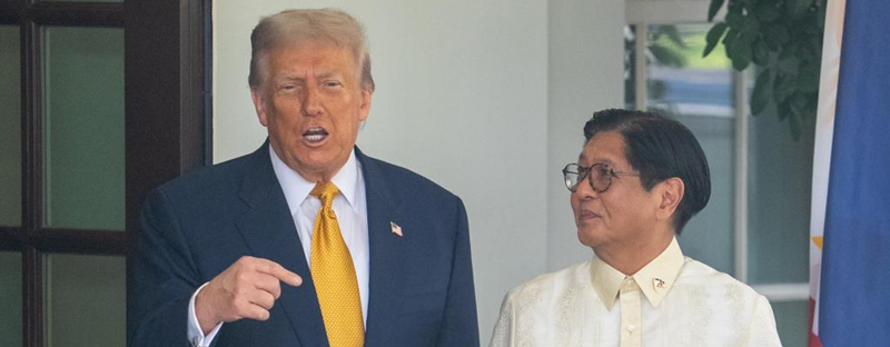 2025年7月22日,好意思国总统特朗普在华盛顿白宫宽贷到访的菲律宾总统马科斯。 图源:新华社